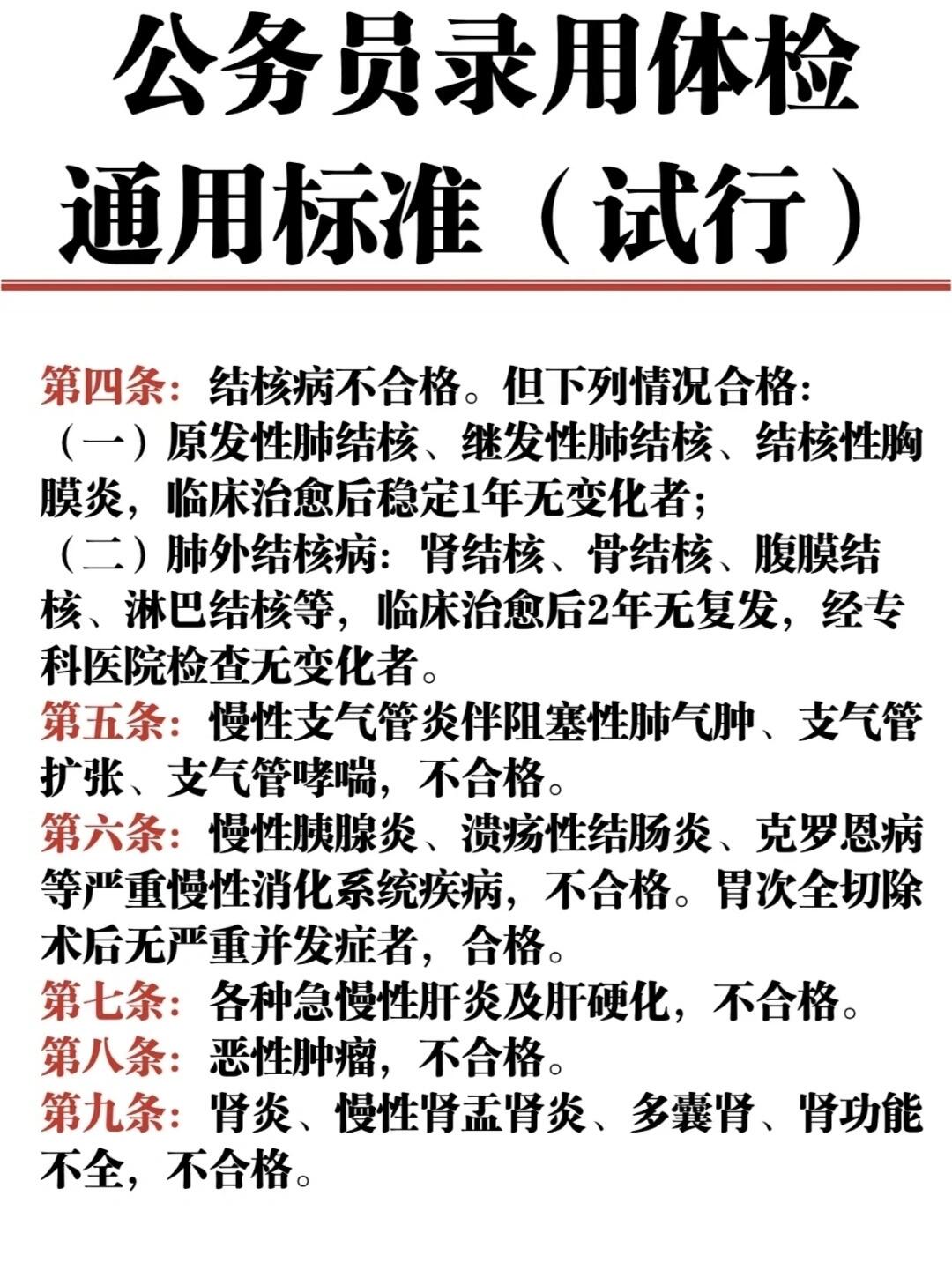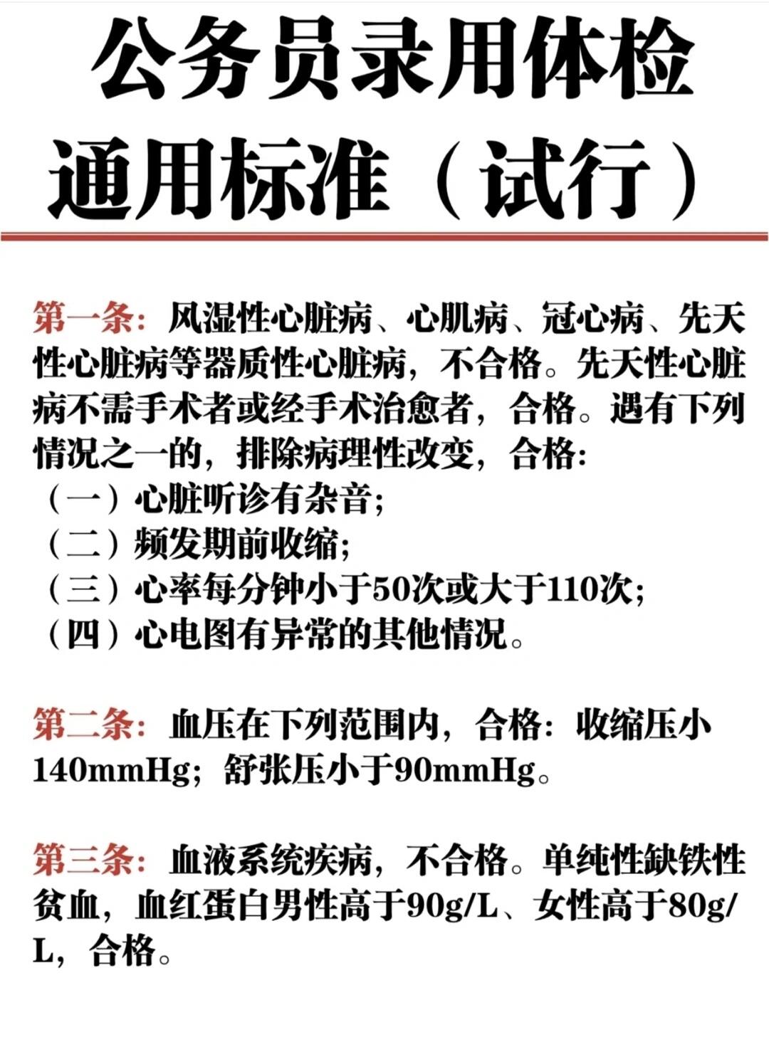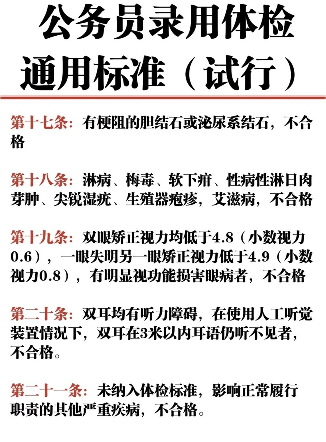 注意,这些病过不了公务员体检! 时间2026-03-15 13:42:25分类体检知识科普大全浏览12 体检帮助:81714515体检不合格解决复制体检帮助 公务员员体检 (公务员体检:项目、准备、注意事项、结果处理和身) 考公考编体检遇上恶性肿瘤,还有机会上岸吗?