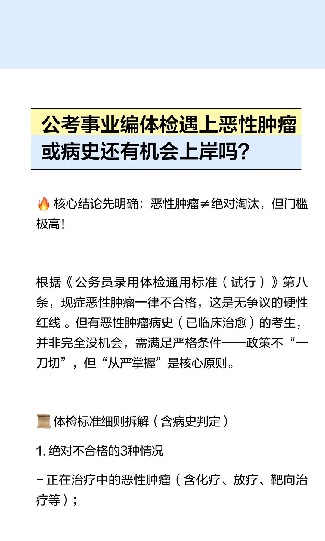 考公考编体检遇上恶性肿瘤,还有机会上岸吗? 时间2026-03-15 13:43:21分类体检知识科普大全浏览11 体检帮助:81714515体检不合格解决复制体检帮助 注意,这些病过不了公务员体检! 公务员体检标准支气管炎,支气管扩张,哮喘